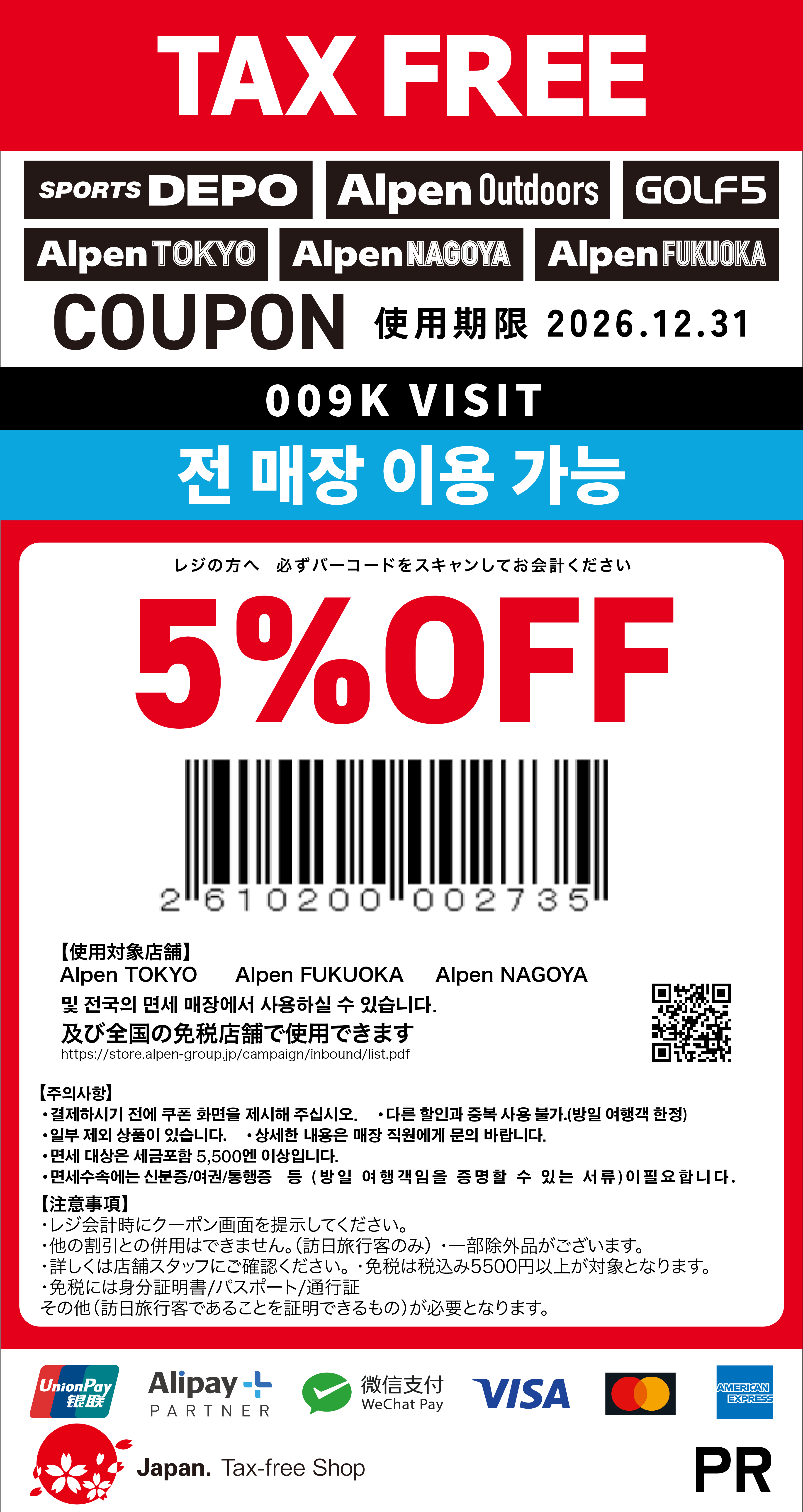 - 다른 할인과 중복 사용할 수 없습니다. (방문 일본 여행객만)